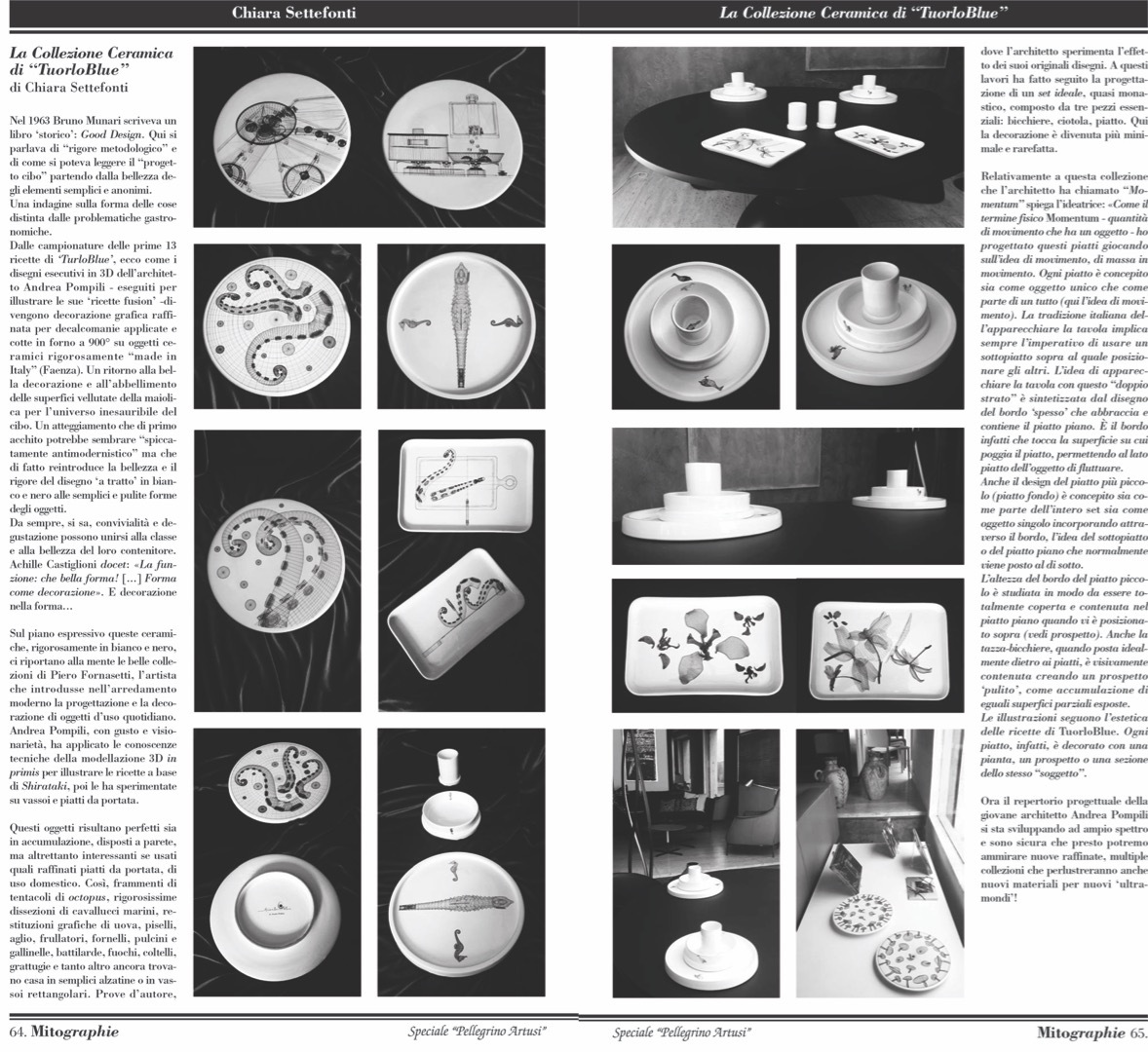 The decoration is achieved through a high-temperature ceramic decal, enabling a refined graphic language. The illustrations, inspired by TuorloBlue’s recipes, unfold across the set as architectural drawings—plans, elevations, and sections of a single subject—reinforcing the dialogue between object, representation, and system.